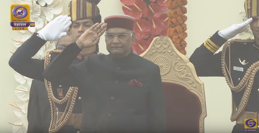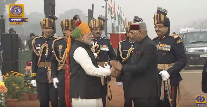 सुबह प्रधानमंत्री नरेन्द्र मोदी ने तीनों सेनाओं के प्रमुखों की मौजूदगी में इंडिया गेट स्थित पवित्र अमर जवान ज्योति पर पुष्पांजलि अर्पित कर कृतज्ञ राष्ट्र की ओर से शहीदों को श्रद्धांजलि दी। इसके बाद प्रधानमंत्री और उनके मंत्रिमंडल के सहयोगियों तथा तीनों सेनाओं के प्रमुखों ने राष्ट्रपति और तीनों सेनाओं के सवोर्च्च कमांंडर रामनाथ कोविंद का स्वागत किया। राष्ट्रपति के सलामी मंच पर 21 तोपों की सलामी लेने के बाद सुबह दस बजे विजय चौक से भव्य परेड आरंभ हुई जिसका लगभग डेढ घंटे बाद लाल किले पर समापन हुआ।
